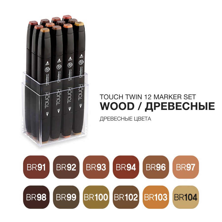 Набор маркеров Touch Twin 12 цветов древесные тона