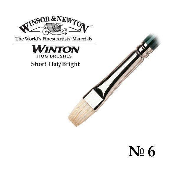 Кисть для масла, Winsor&Newton Winton, свиная щетина, короткая обойма, плоская, №6