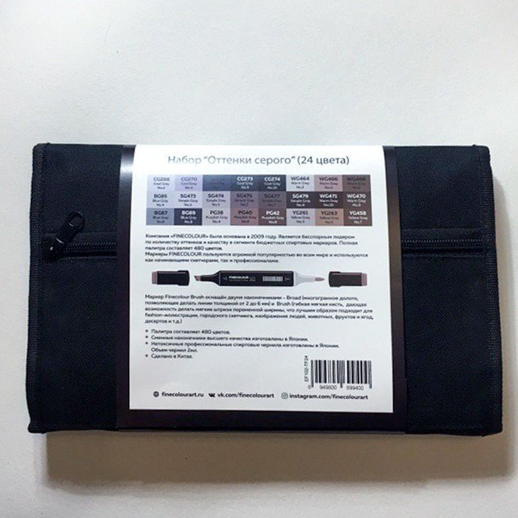 Набор маркеров Finecolour Brush 24 цвета в пенале Оттенки серого