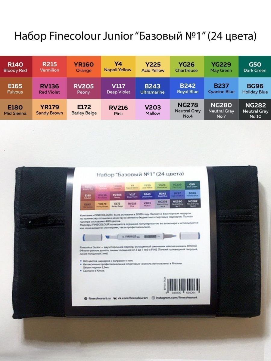 Набор маркеров Finecolour Junior 24 цветов в пенале Базовый №1
