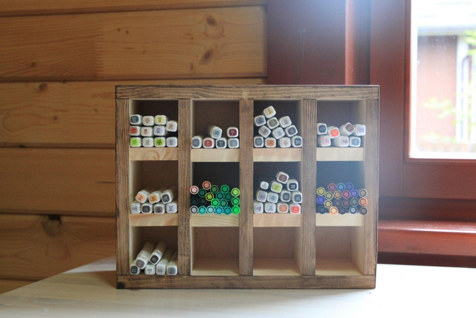 Подставка для маркеров - удобный вариант для их хранения. Маркеры, расположенные горизонтально, служат значительно дольше, так как чернила внутри корпуса растекаются равномерно и не скапливаются в одном конце.