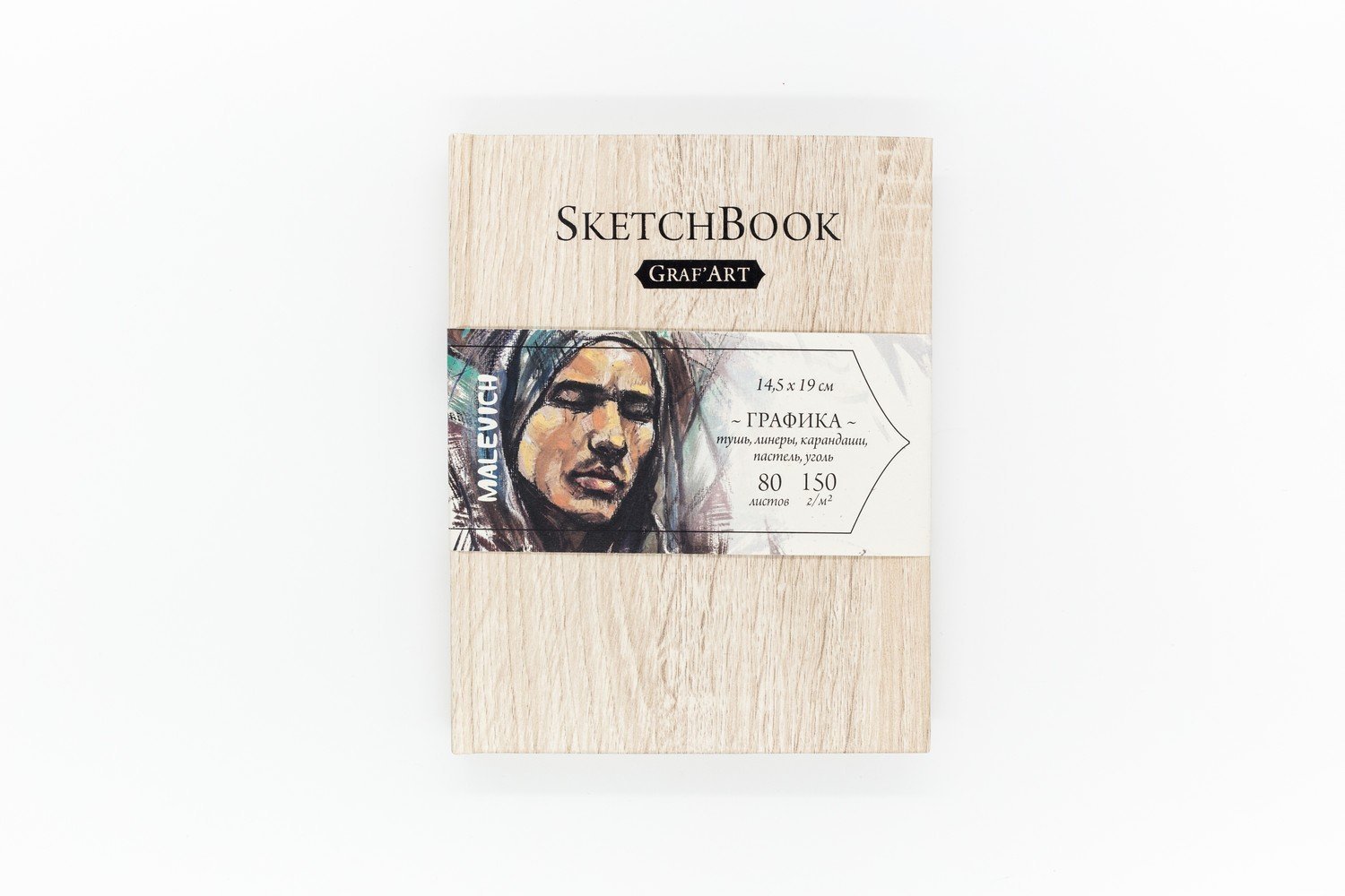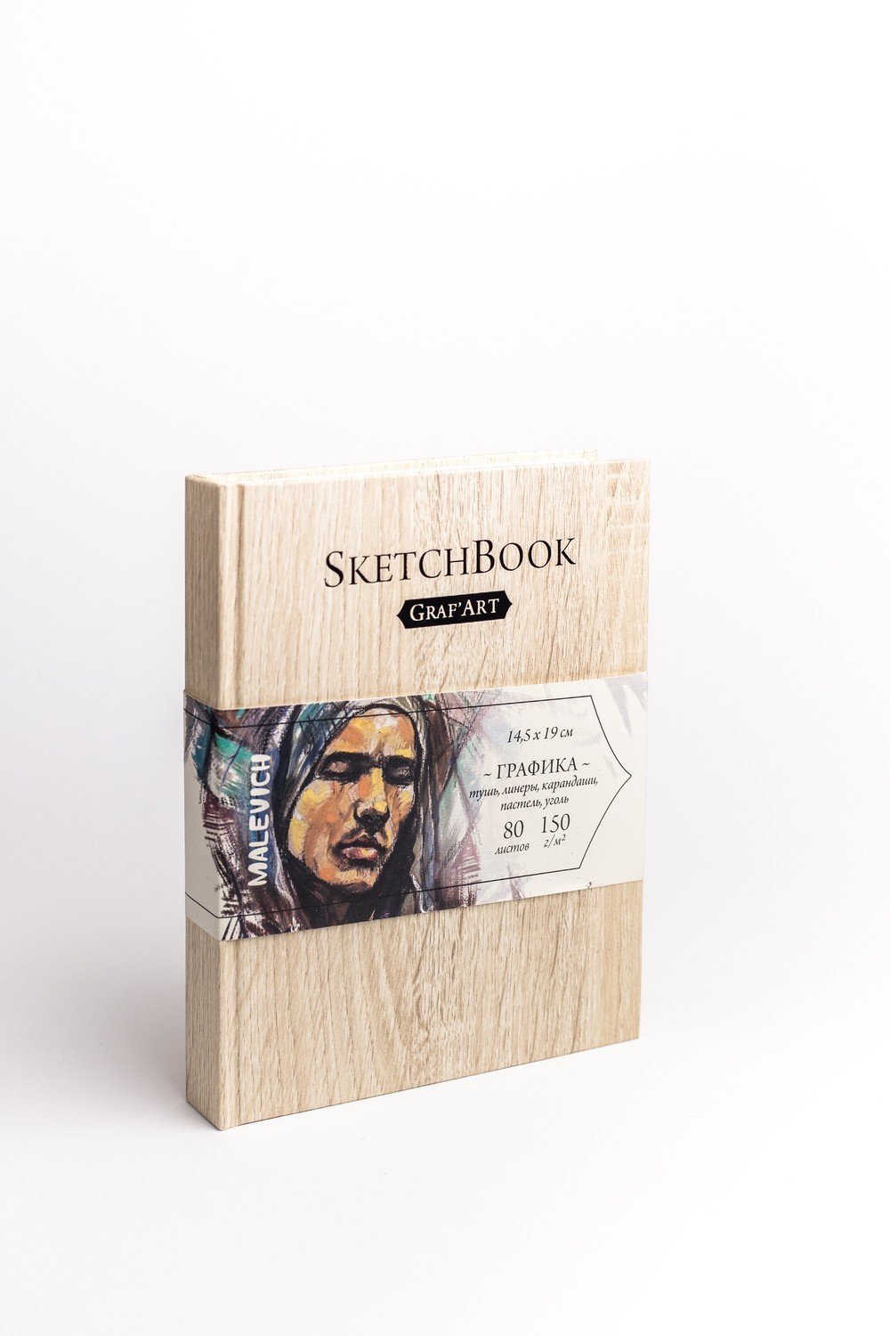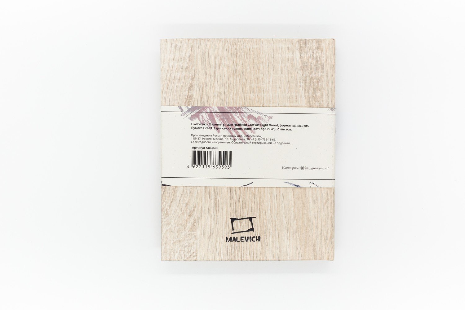 Скетчбук Малевичъ для графики GrafArt, Light Wood, 150 г/м, 14,5x19 см, 80л