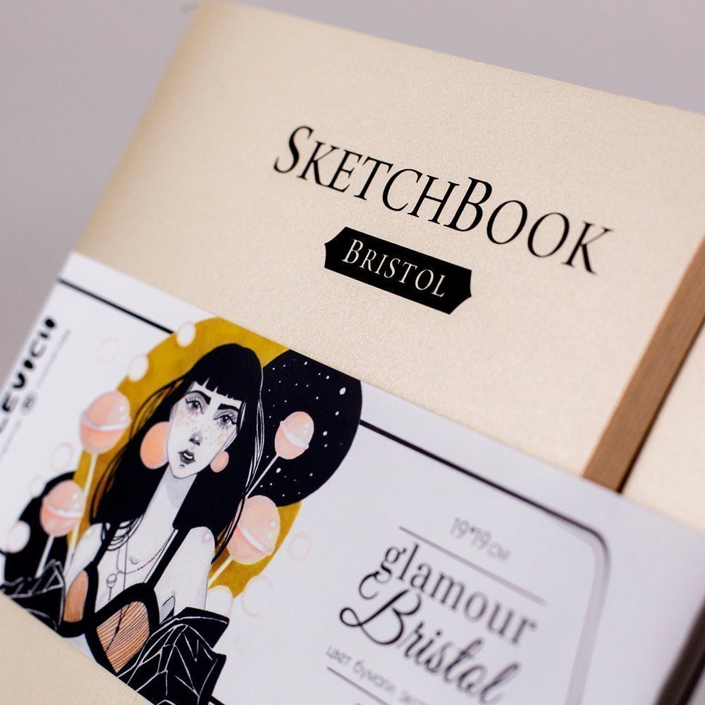 Скетчбук Малевичъ для графики и маркеров Bristol Glamour, шампань, 180 г/м, 19х19 см, 20л