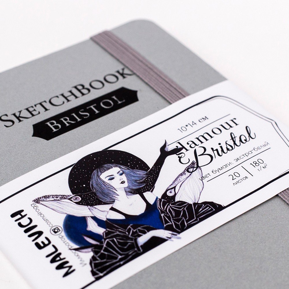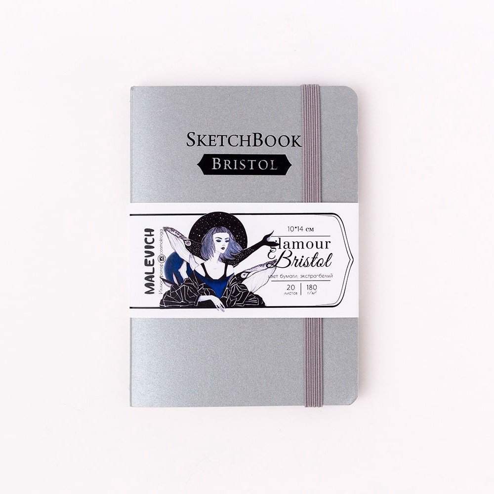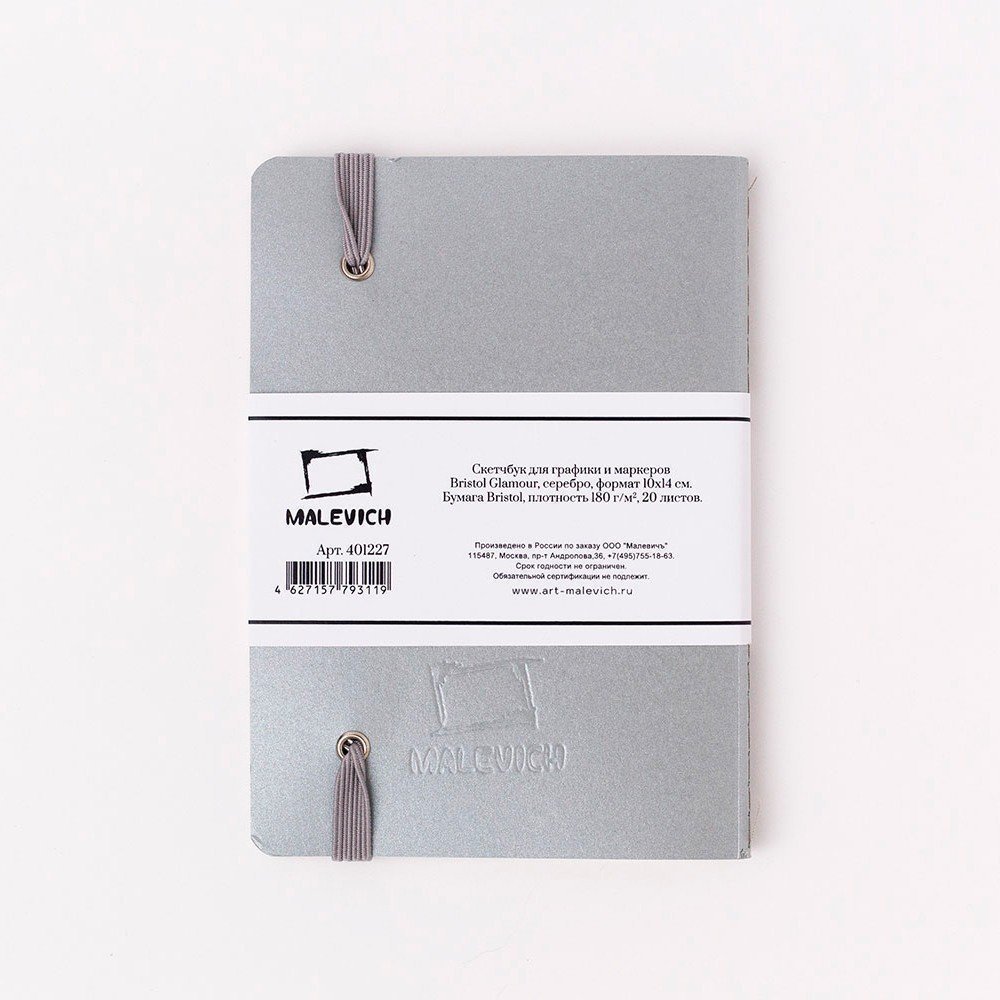 Скетчбук Малевичъ для графики и маркеров Bristol Glamour, серебро, 180 г/м, 10х14 см, 20л