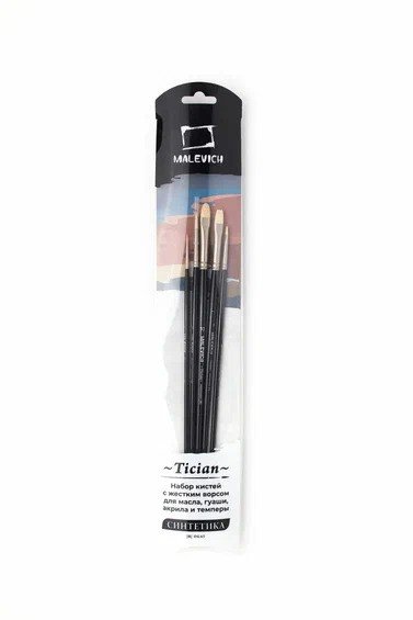 Набор кистей из синтетики Малевичъ "Тициан" 5 шт (круглые кисти № 1, 3, плоские № 4, 8, плоскоовальная №10)