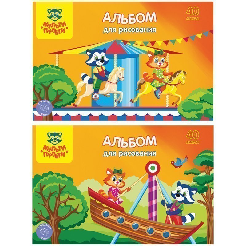 Альбом для рисования Мульти-Пульти формата А4 в картонной обложке. Состоит из 40 листов офсетной бумаги, тип скрепления - склейка. Плотность бумаги — 100 г/кв.м, соответствует Техническому регламенту «О безопасности продукции, предназначенной для детей и подростков». Подходит для рисования различными типами красок, фломастерами, цветными и чернографитными карандашами, гелевыми ручками. Без возрастных ограничений.