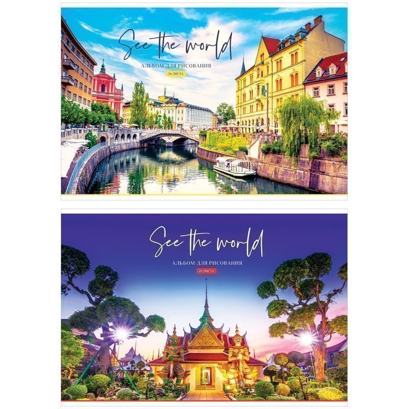 Альбом для рисования 24л, А4, на склейке ArtSpace "Путешествия. See the world"