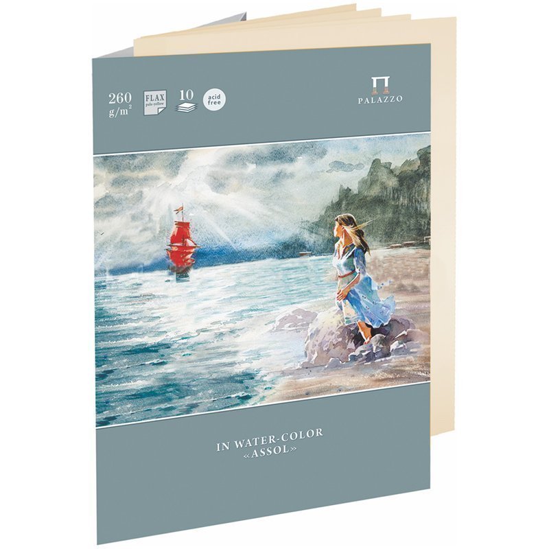 Папка для акварели 10л А4 Лилия Холдинг "Ассоль", 260г/м2, "лён" палевый