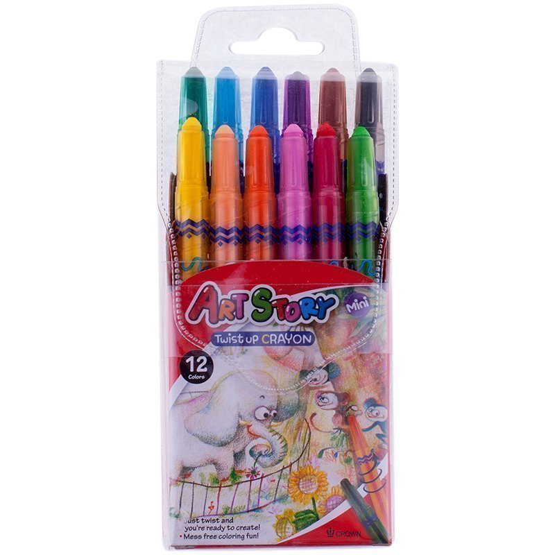 Карандаши восковые Crown "ArtStory", 12 цветов, мини, выкручивающийся стержень, ПВХ, европодвес