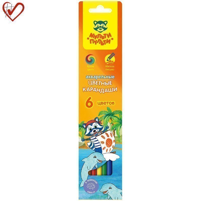 Карандаши акварельные Мульти-Пульти "Енот в Карибском море", 06 цветов