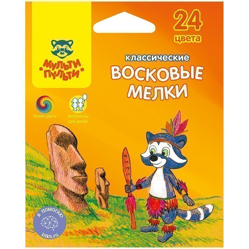 Мелки восковые Мульти-Пульти "Енот на острове Пасхи", 24 цвета, круглые