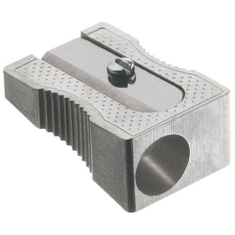 Качественная металлическая точилка с острым лезвием отлично подходит для заточки как чернографитных, так и цветных карандашей