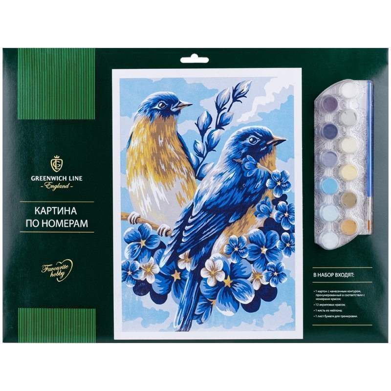 Картина по номерам Greenwich Line "Весенние птицы" A3, с акриловыми красками, картон, европодвес
