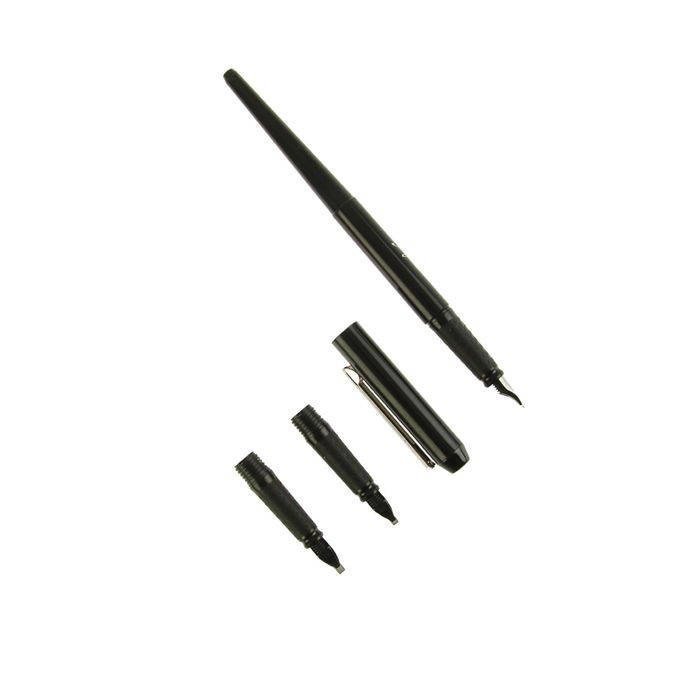 В наборе для левшей ручка для каллиграфии, 3 пишущих узла: Scribe: 1,5 мм, 2,3 мм, 2,7 мм. 2 черных картриджа в мет. пенале
