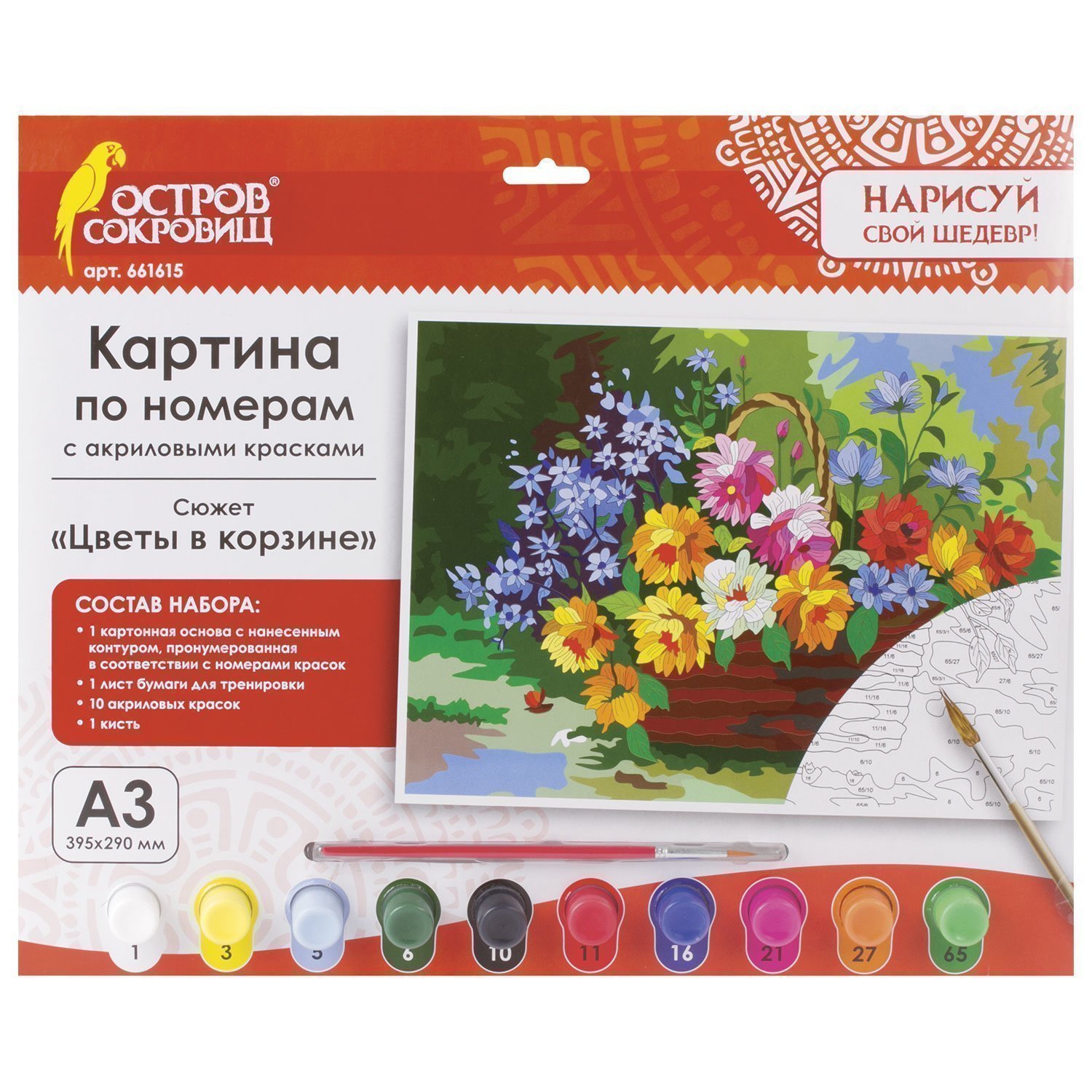 Картина по номерам ОСТРОВ СОКРОВИЩ "Цветы в корзине" А3 (акриловые краски, кисть) 661615
