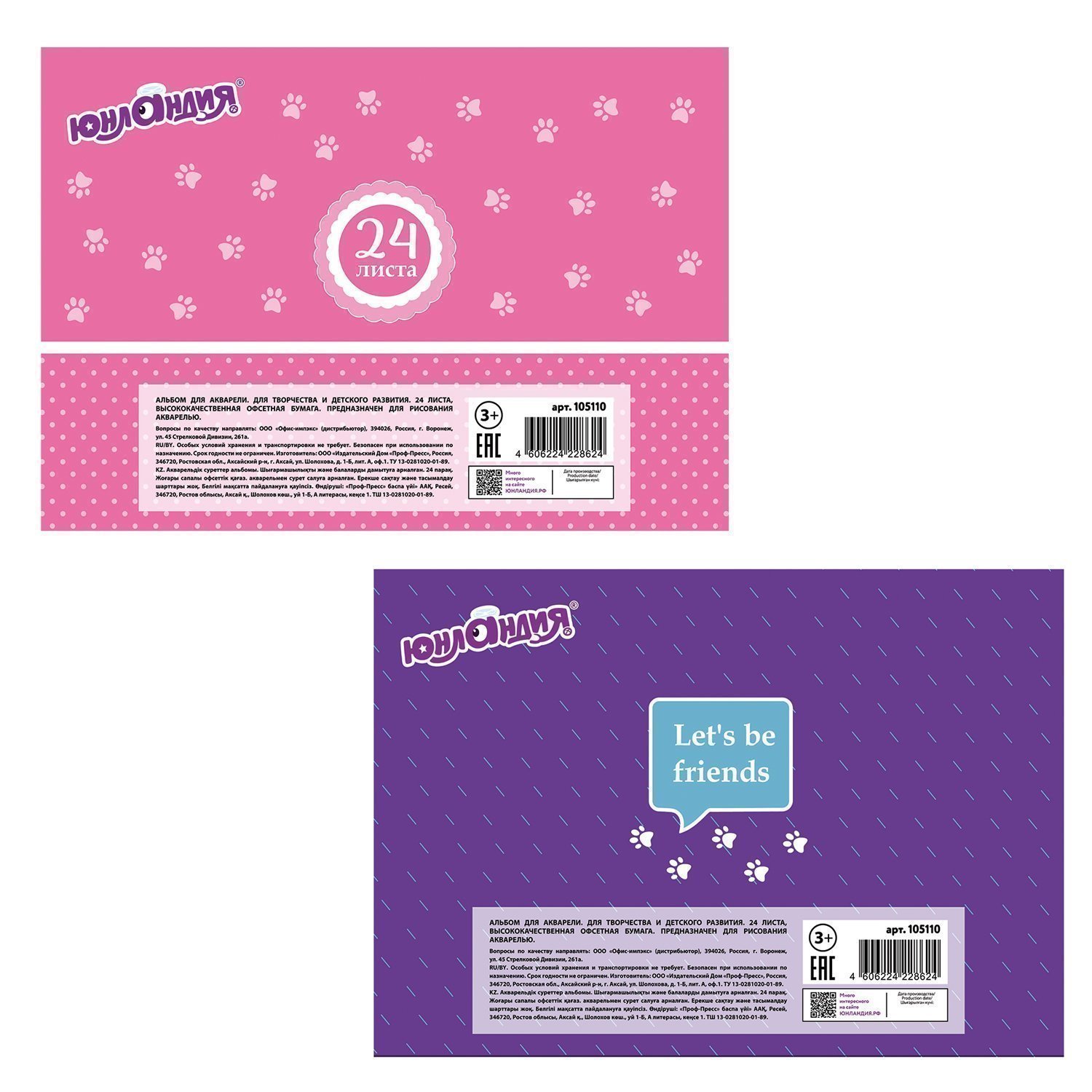 Альбом для акварели ЮНЛАНДИЯ "Собачки" А4 24 листа 105110