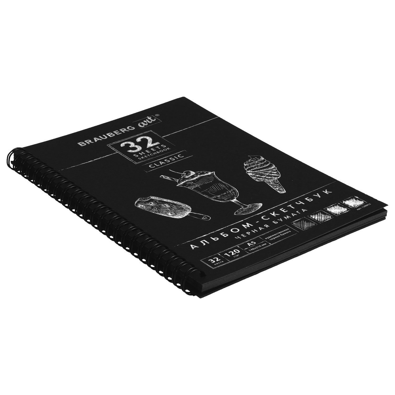 Скетчбук BRAUBERG ART "CLASSIC" черная бумага 148х210 мм, 32 листа 128952