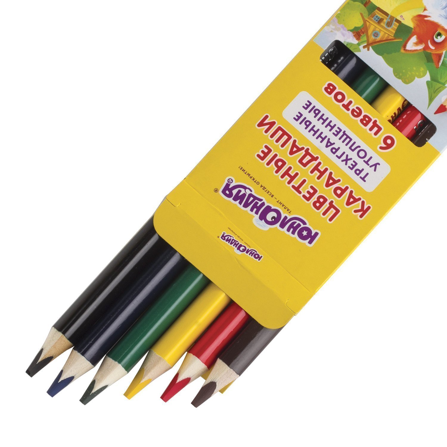 Карандаши цветные утолщенные ЮНЛАНДИЯ "СКАЗОЧНЫЙ МИР" 6 цветов с точилкой 181369