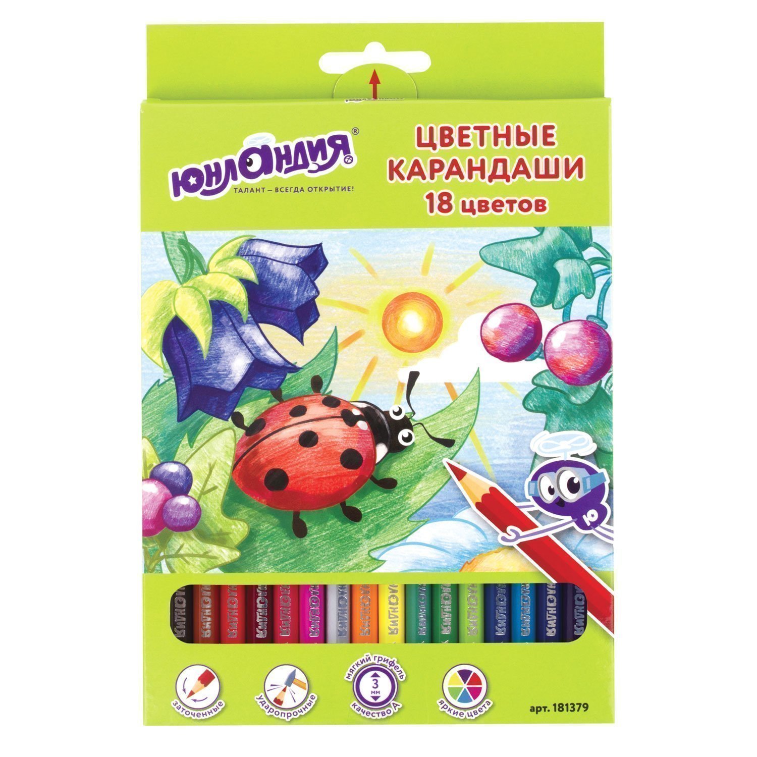 Карандаши цветные ЮНЛАНДИЯ "В ГОСТЯХ У БУКАШЕК" 18 цветов 181379