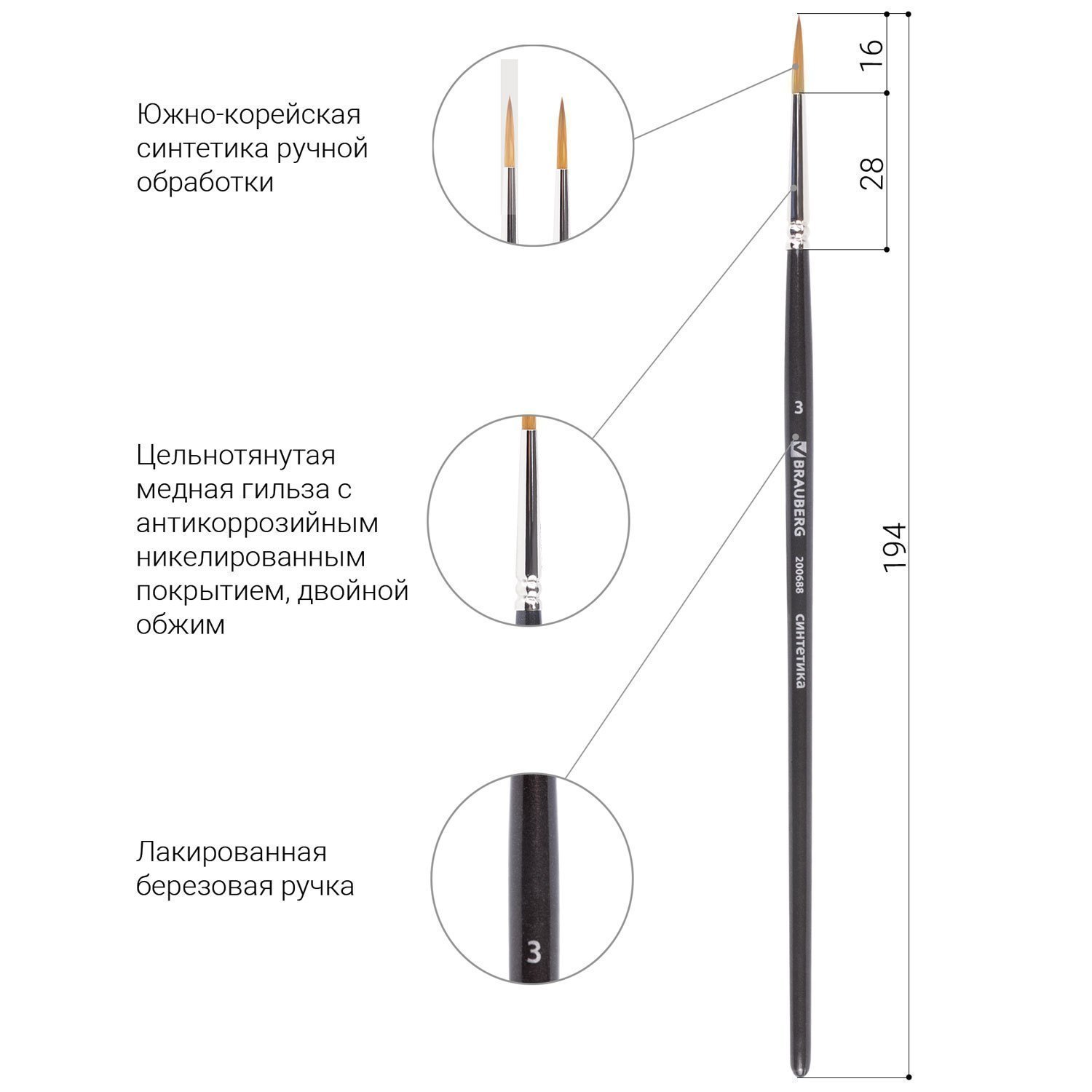 Кисть художественная профессиональная BRAUBERG ART "CLASSIC", синтетика мягкая № 3 200688