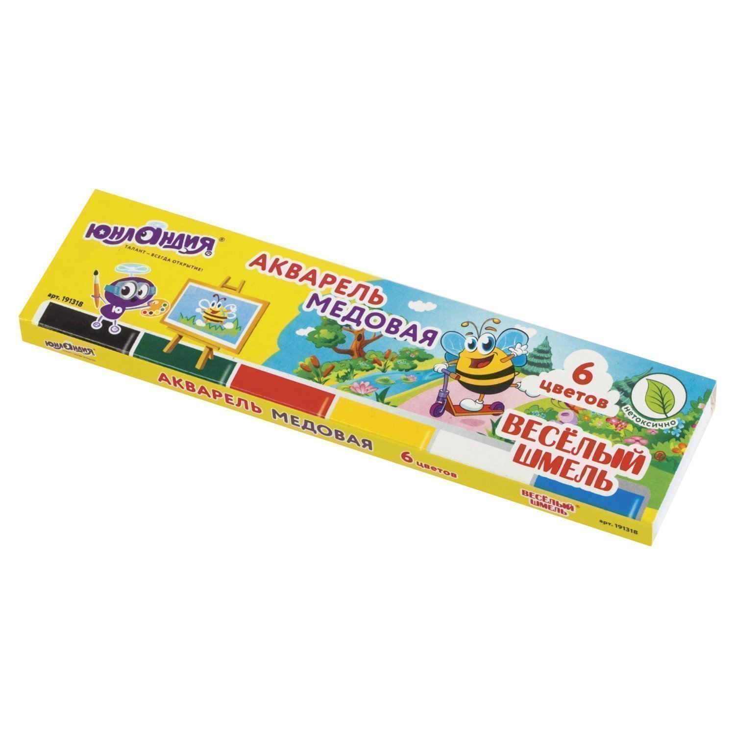 Краски акварельные ЮНЛАНДИЯ "ВЕСЁЛЫЙ ШМЕЛЬ" медовые, 6 цветов 191318