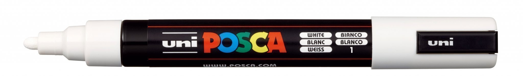 Маркер POSCA PC-5M, белый, 1.8 - 2.5 мм, пулевидный наконечник
