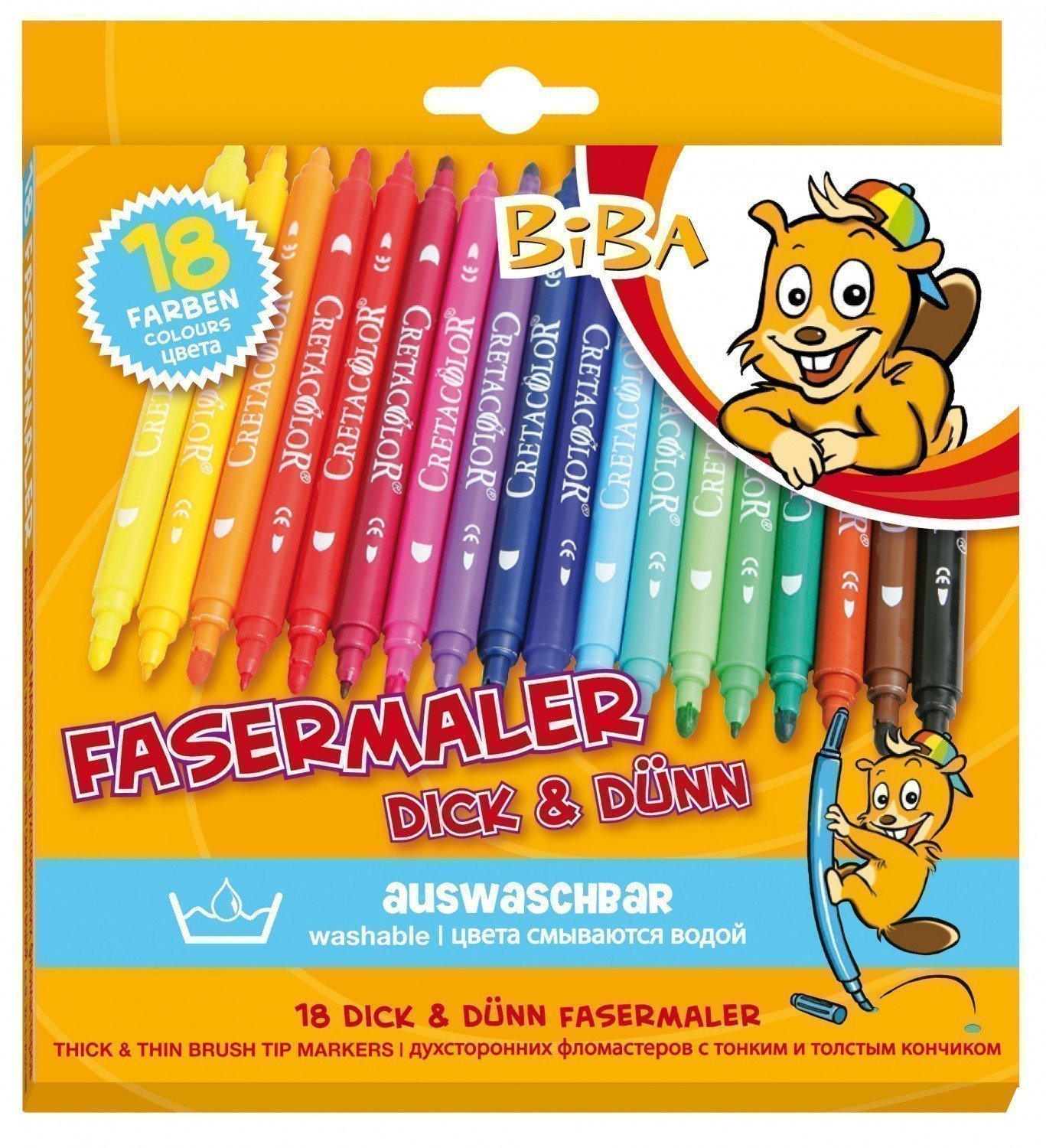 Фломастеры BIBA с тонким и толстым кончиком, 18 цветов, картонная коробка