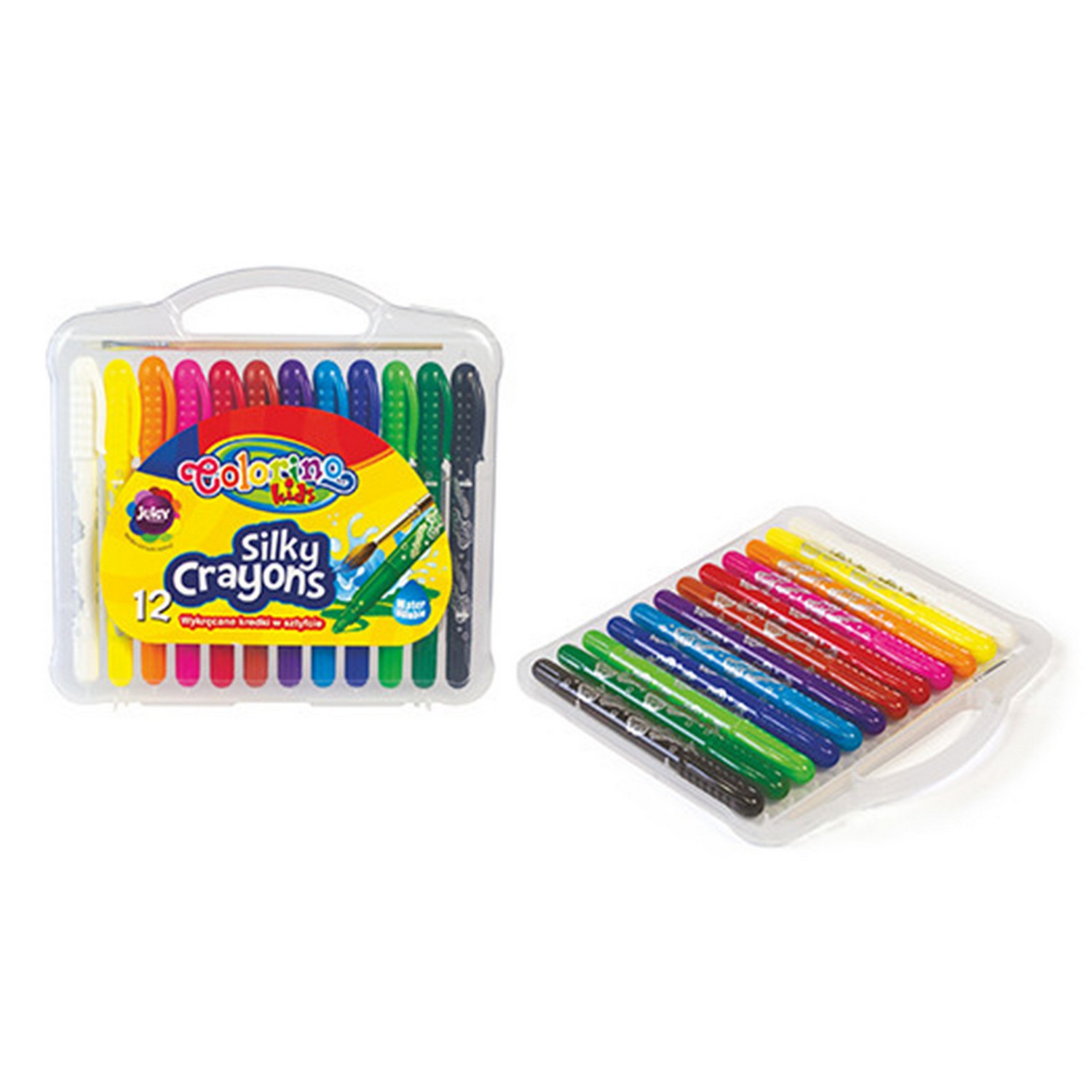 Акварельные восковые мелки Colorino с выдвижным стержнем и защитным колпачком, 12 цветов в пластиковом кейсе