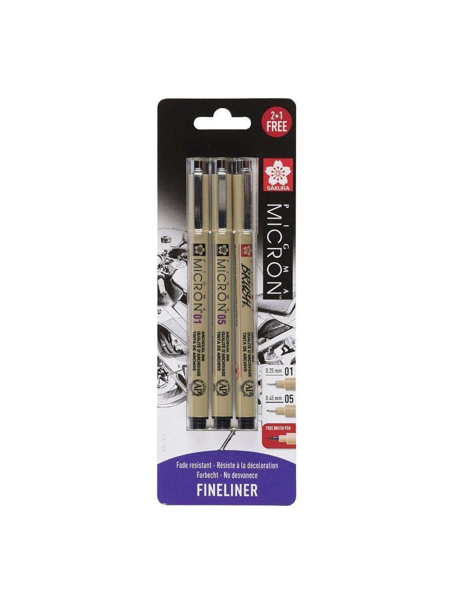 Набор капиллярных ручек Pigma Micron 3 шт (0,25; 0,45мм; ручка Pigma Brush), черный