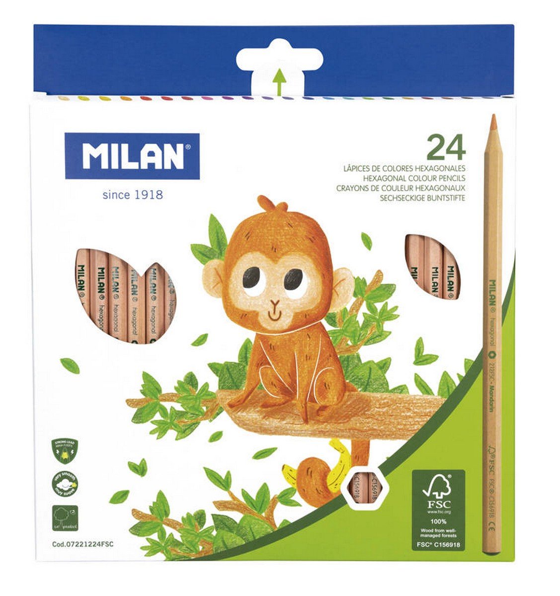 Набор цветных карандашей MILAN деревянные шестигранные 24 цвета 07221224FSC