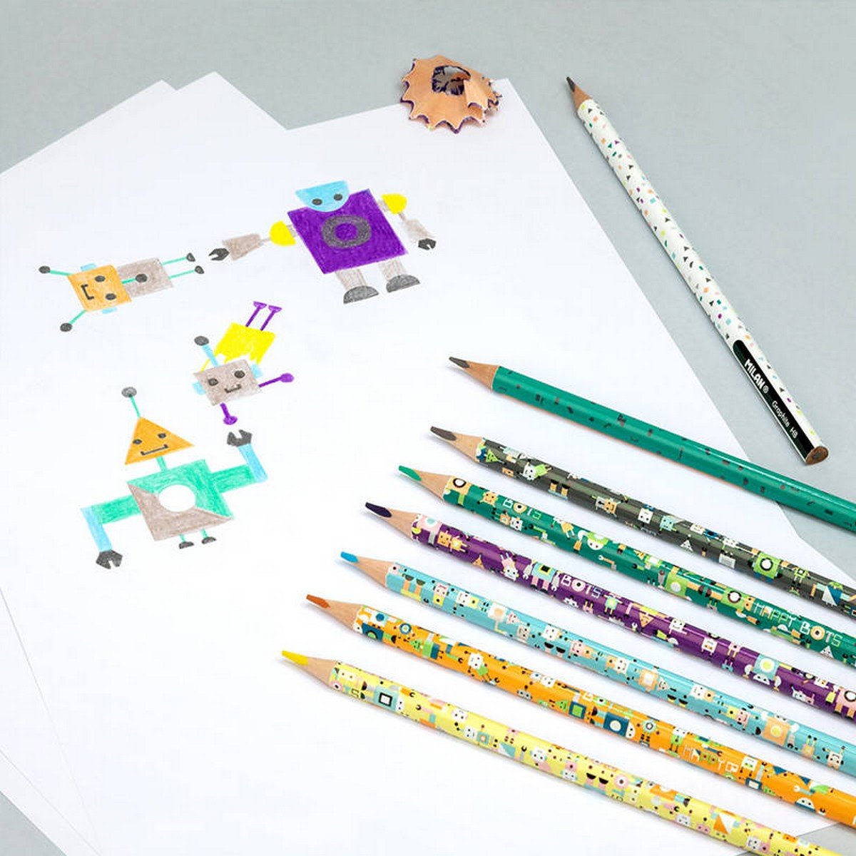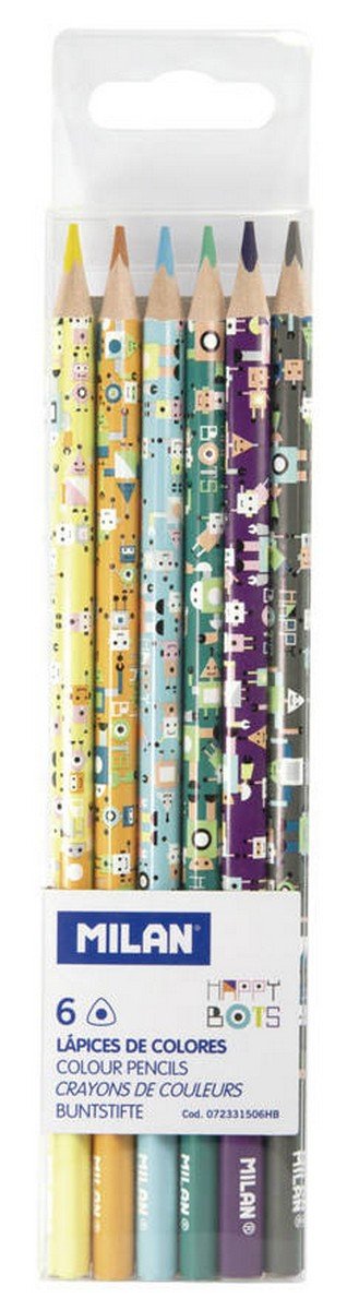 Набор цветных карандашей MILAN HAPPY BOTS трехгранные с рисунком 6 цветов 072331506HB