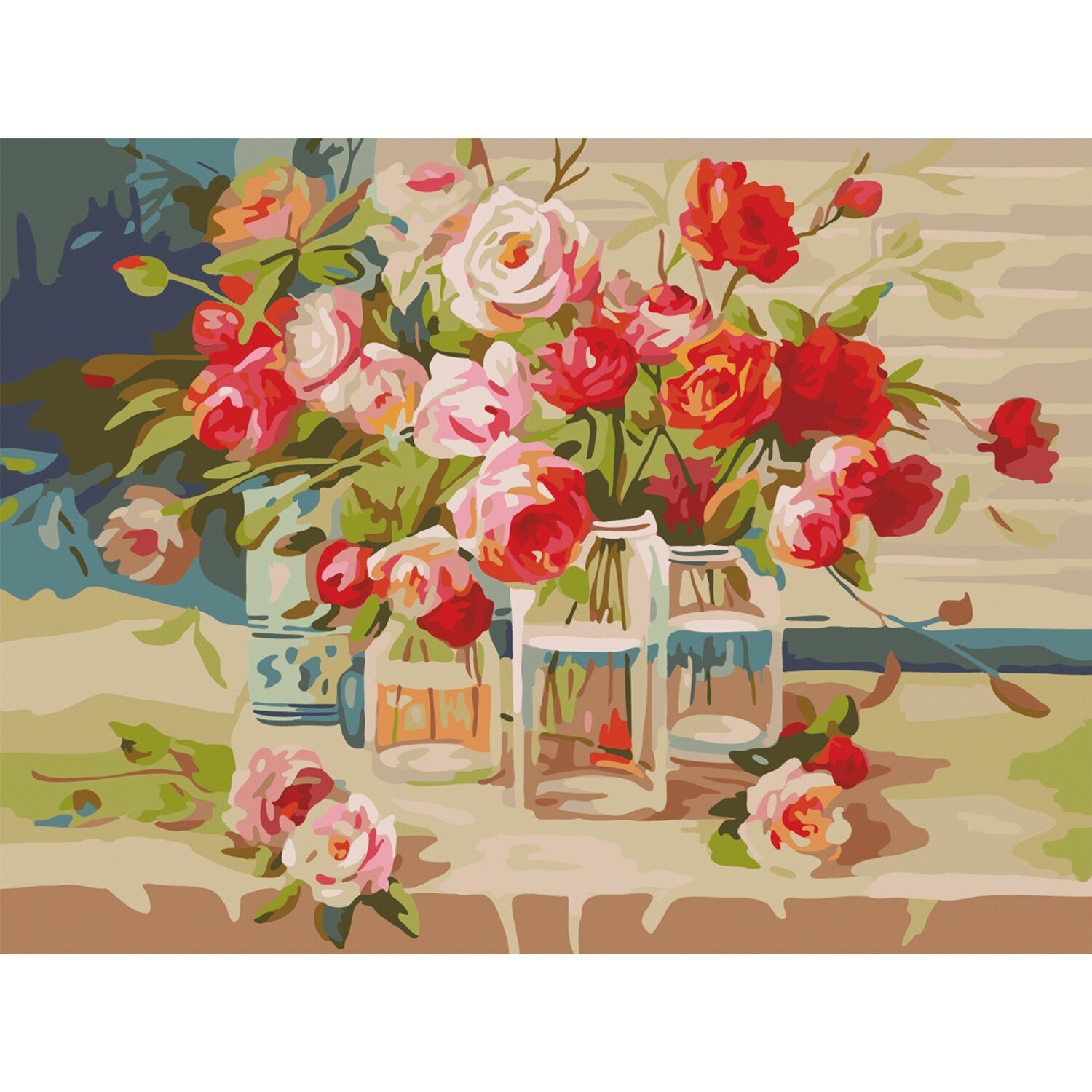 Картина по номерам 40х50 см, ОСТРОВ СОКРОВИЩ "Свежесть роз", на подрамнике, акриловые краски, 3 кисти, 662465