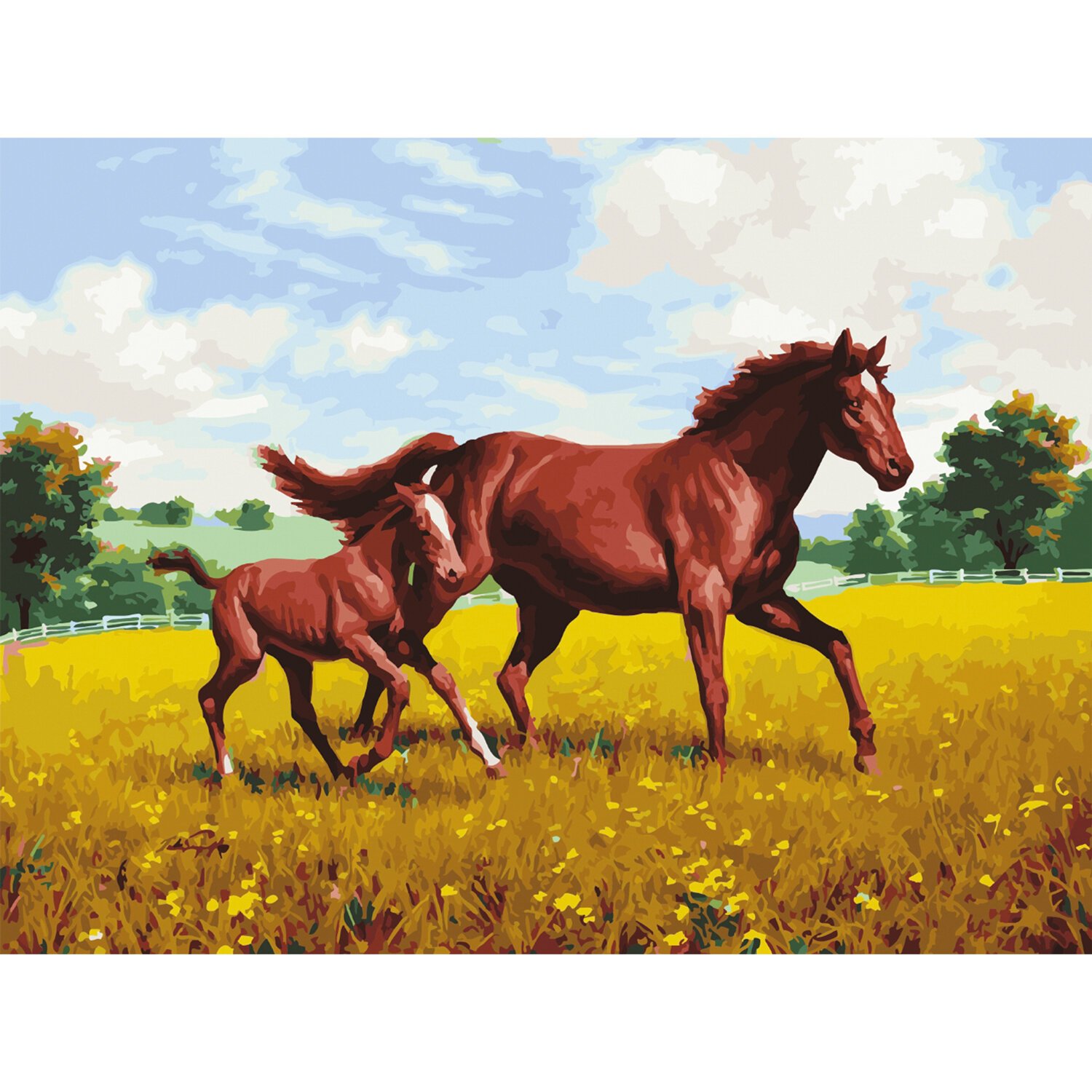 Картина по номерам 40х50 см, ОСТРОВ СОКРОВИЩ "Лошади на лугу", на подрамнике, акриловые краски, 3 кисти, 66246