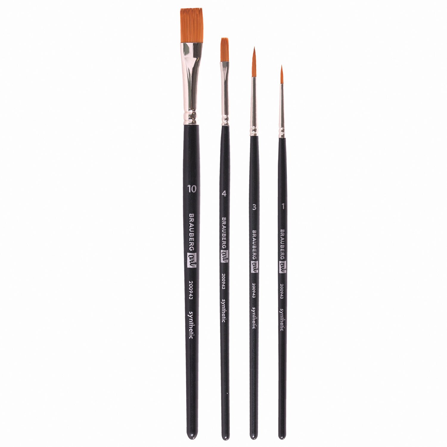 Кисти художественные BRAUBERG ART, набор 4 штуки, синтетика, (круглые № 1, 3, плоские № 4, 10), 200943