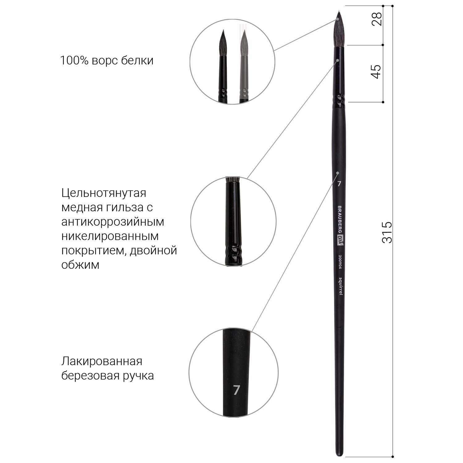 Кисть художественная проф. BRAUBERG ART CLASSIC, белка, круглая, № 7, длинная ручка, 200904
