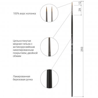 Кисти из колонка отлично впитывают и отдают краску, хорошо держат форму, долговечны и надежны. Кисть № 2 позволит комфортно прорисовывать мелкие детали. Деревянную длинную рукоятку кисти удобно держать в руке. Длинная ручка покрыта лаком, что защищает ее от воздействия красок и влаги. Форма пучка - круглая. Упаковка - ОПП-пакет с европодвесом и картонной подложкой.