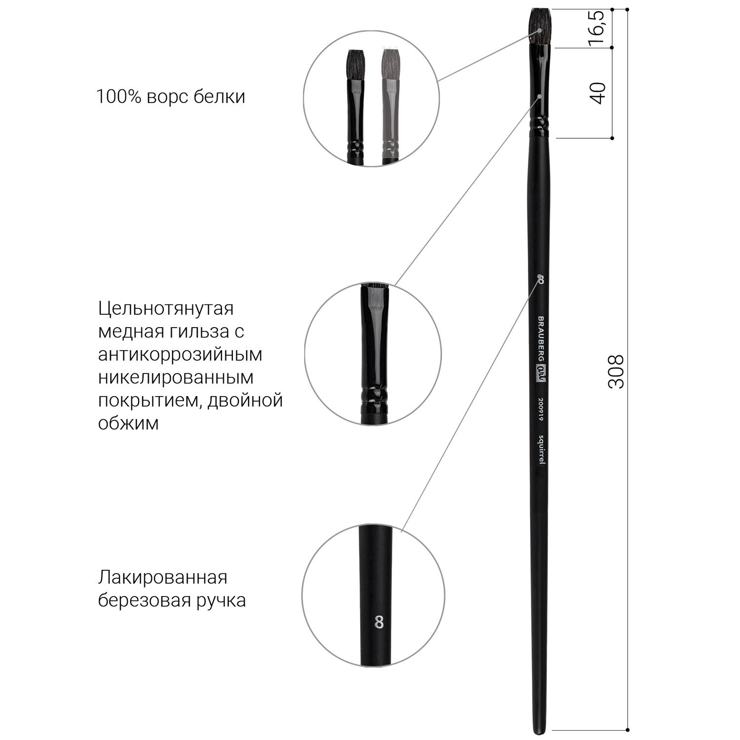 Кисть художественная проф. BRAUBERG ART CLASSIC, белка, плоская, № 8, длинная ручка, 200919