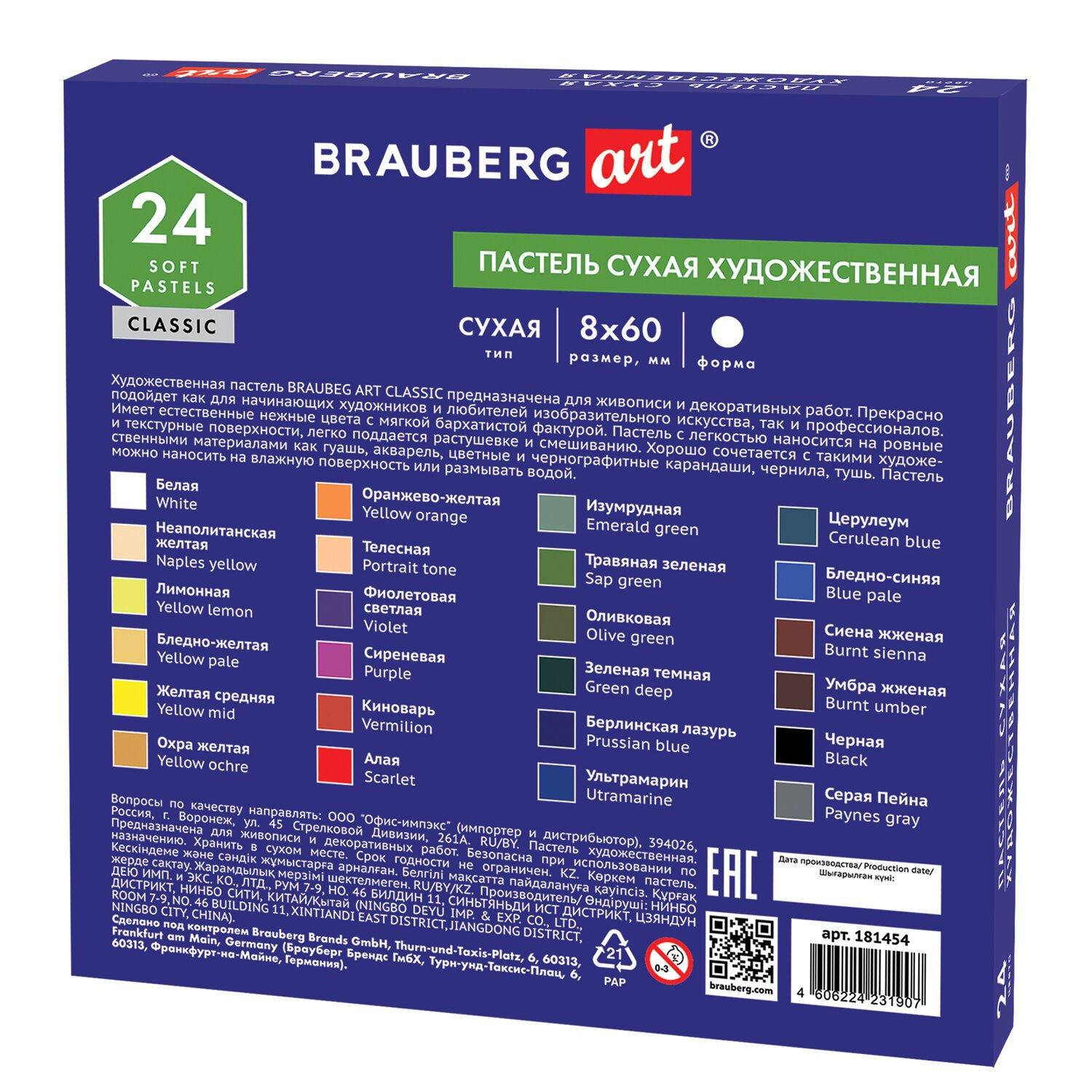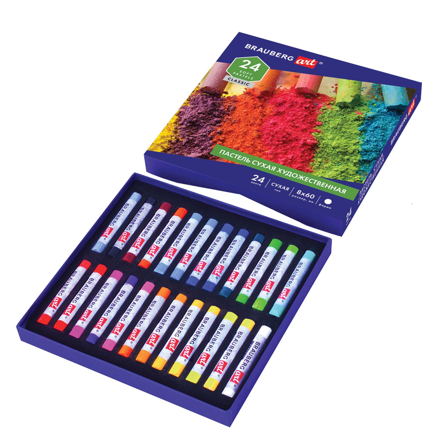 Пастель сухая художественная BRAUBERG ART CLASSIC, 24 цвета, круглое сечение, 181454