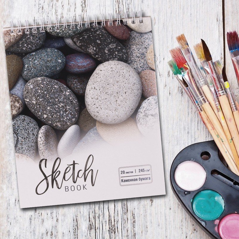 Скетчбук, каменная бумага 245 г/м2, 170х195 мм, 20 л., гребень, подложка, холодная фольга, "Камни", 98610