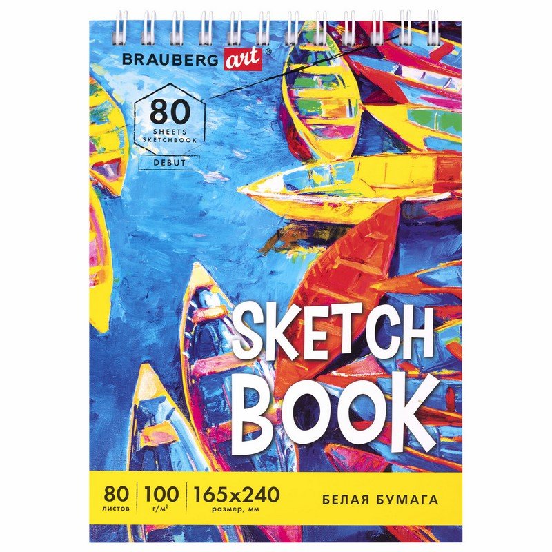 Скетчбук белая бумага 100 г/м2 165х240 мм, 80 л., гребень, твердая обложка, BRAUBERG ART DEBUT, 112985