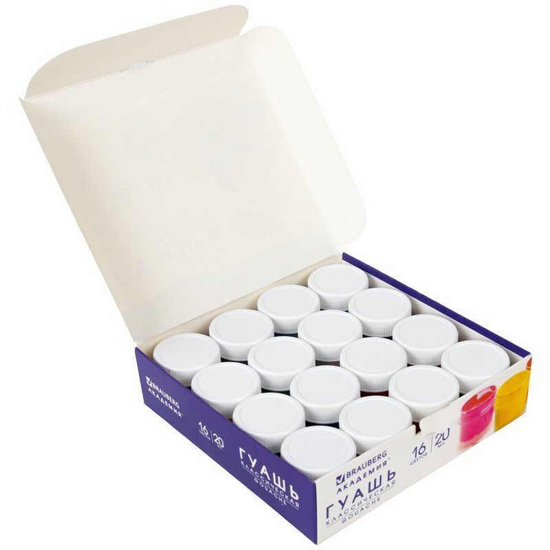Гуашь BRAUBERG "АКАДЕМИЯ КЛАССИЧЕСКАЯ ЭКСТРА", 16 цветов по 20 мл, 192373