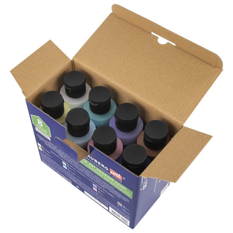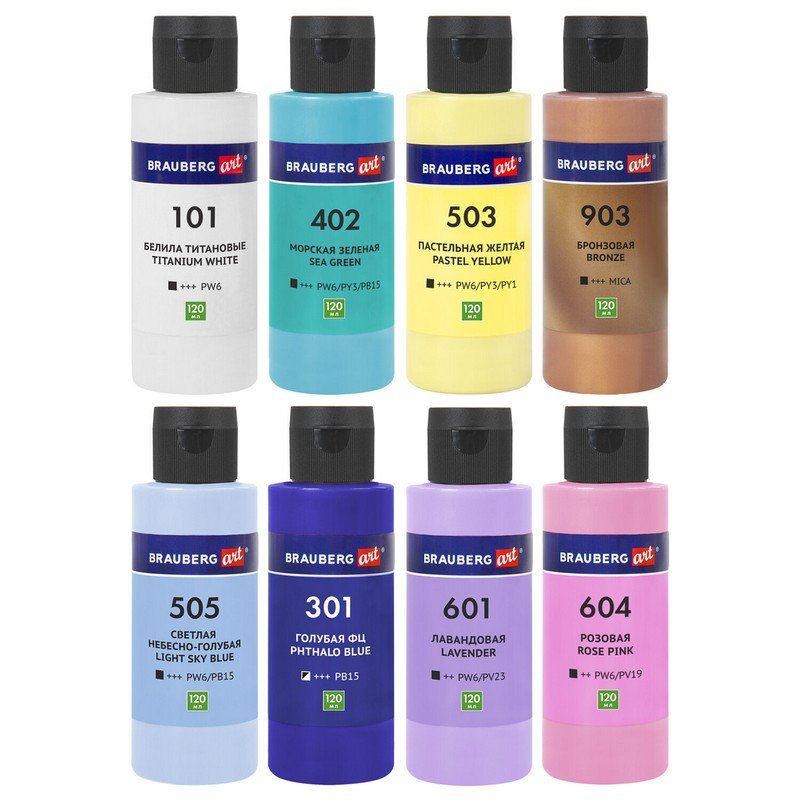 Краски акриловые для техники "Флюид Арт" (POURING PAINT) Пастельные тона, 8 цветов по 120 мл, BRAUBERG ART, 19