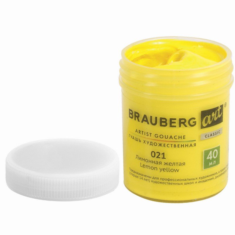 Гуашь художественная 1 шт., BRAUBERG ART CLASSIC, баночка 40 мл, ЛИМОННАЯ ЖЕЛТАЯ, 191571