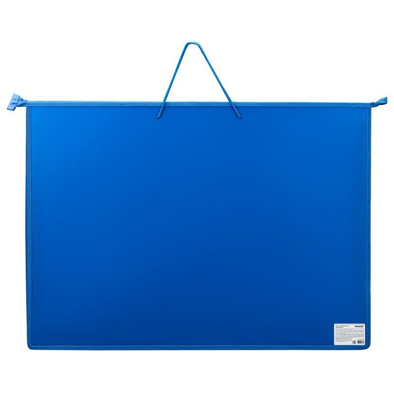 Папка для рисунков и чертежей на молнии с ручками ПИФАГОР А2, 1 отделение, пластик, ручки-шнурок, синяя, 27087