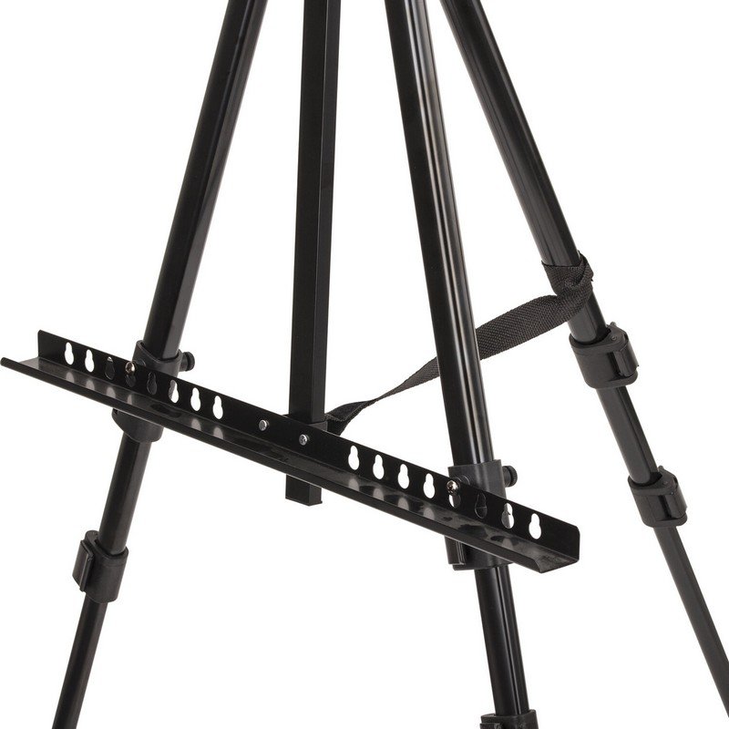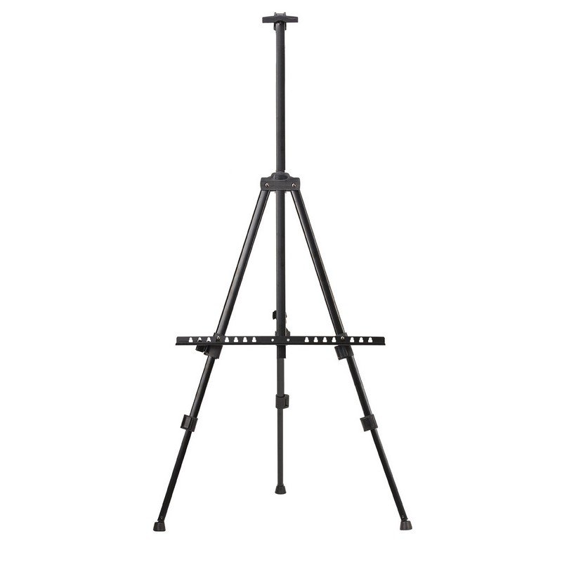 Выполнен из устойчивого к коррозии металла, который обеспечивает легкость и прочность изделия. Максимальная высота размещаемого холста - до 82 см. Поставляется в комплекте с черным чехлом на молнии и ремешком, обеспечивающим удобство транспортировки при выездных работах. Легко складывается, удобен для переноски. Максимальный размер в рабочем состоянии - 160х105х100 см. Минимальный размер в рабочем состоянии - 40x40x37 см. Вес - 1.14 кг. Упакован в пакет и белую коробку. Мольберт-тренога обладает рядом преимуществ: 1) компактность; 2) универсальность - возможность использовать мольберт в напольной и настольной конфигурации. Художественные мольберты пригодятся как канцтовары школьникам, студентам, участникам мастер-классов, ученикам художественных школ, студий и училищ, живописных мастерских, так как у них представлена широкая гамма размеров и видов. Можно найти вариант для работы дома или пленэре. С их помощью можно создать даже иллюстрации к сонетам Шекспира. Эти мольберты используют любители для хобби и профессионалы, которые стремятся достичь такой же славы как Пикассо (Picasso), Малевич, Шагал, Моне (Claude Monet), Рембрандт (Rembrandt), Дали (Salvador Dali), Уорхол (Andy Warhol), Рублёв, Фрида Кало (Frida Kahlo), Ван Гог (Vincent van Gogh), Тициан (Tician), Анри Матисс (Henri Matisse) Леонардо да Винчи (Leonardo da Vinci) и другие популярные художники и артисты. Творчество - луч света в серых буднях!
