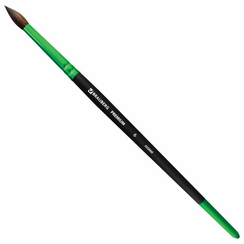 Кисть из ворса пони № 6, BRAUBERG PREMIUM, 200985