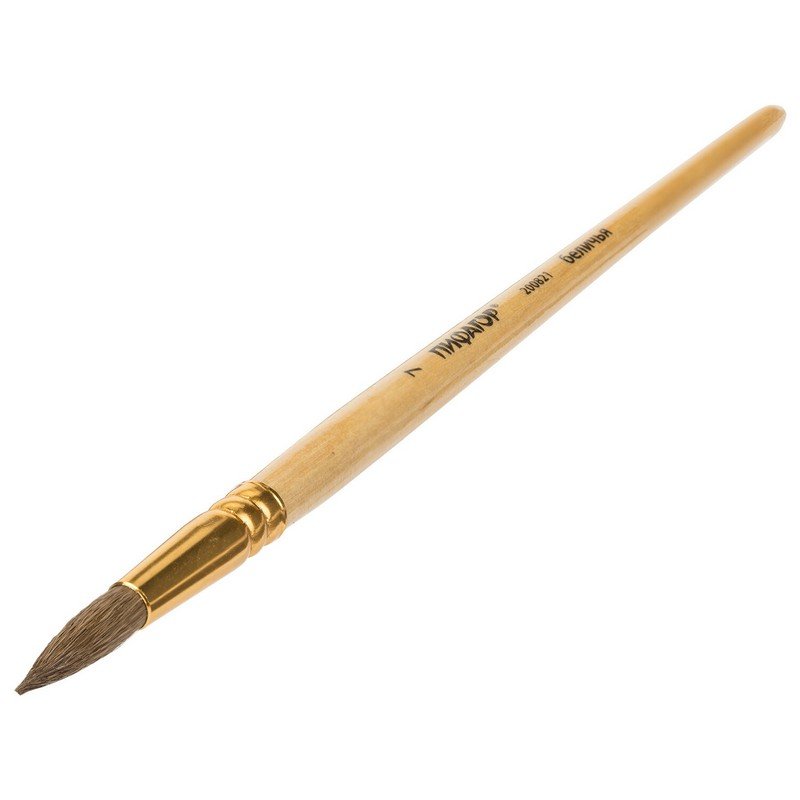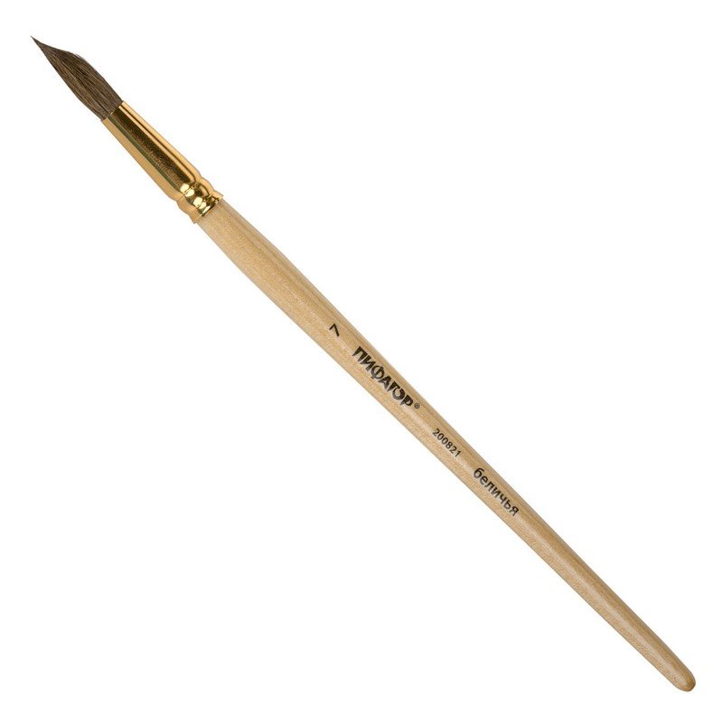 Кисть ПИФАГОР, БЕЛКА, круглая, № 7, деревянная лакированная ручка, с колпачком, пакет с подвесом, 200821