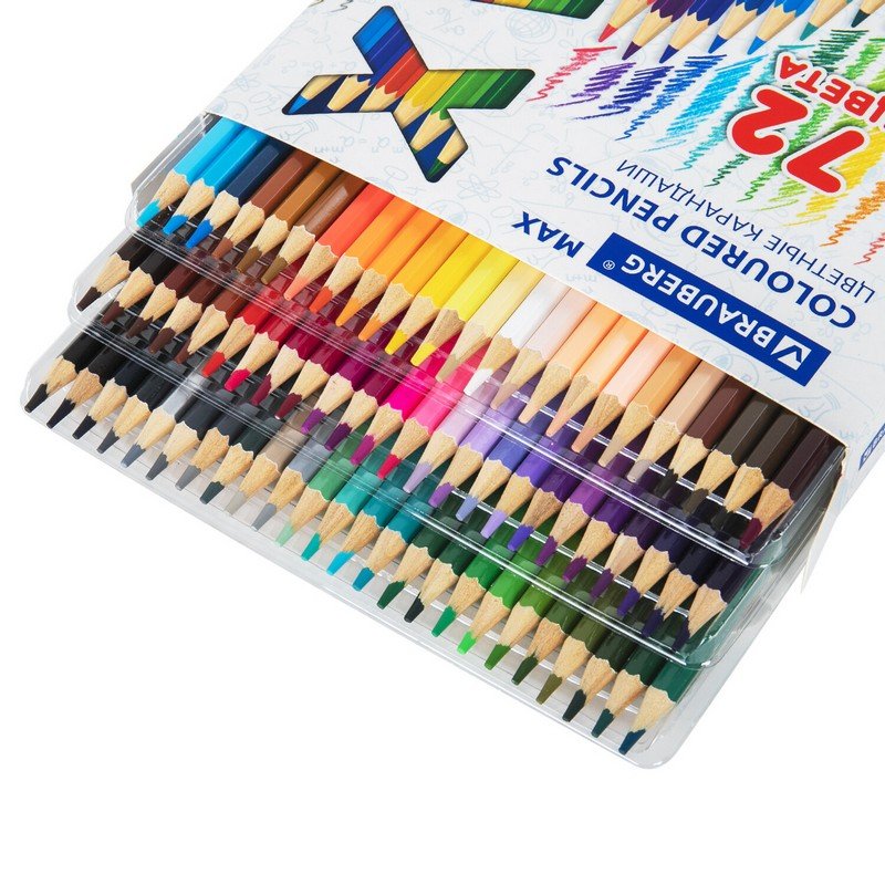Карандаши цветные супермягкие яркие классические BRAUBERG MAX, 72 цвета, грифель 3,3 мм, 181861