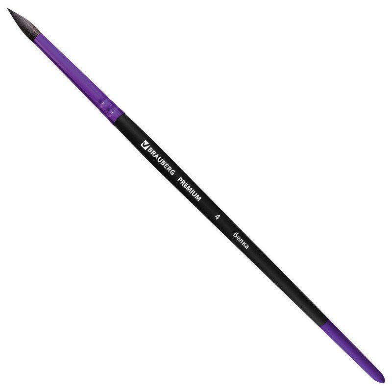 Кисть беличья круглая № 4, BRAUBERG PREMIUM, 200973