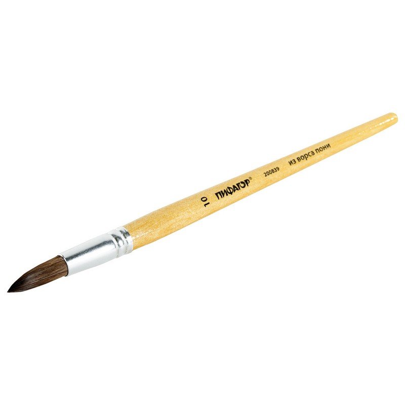 Кисть ПИФАГОР, ПОНИ, круглая, № 10, деревянная лакированная ручка, колпачок, пакет с подвесом, 200839